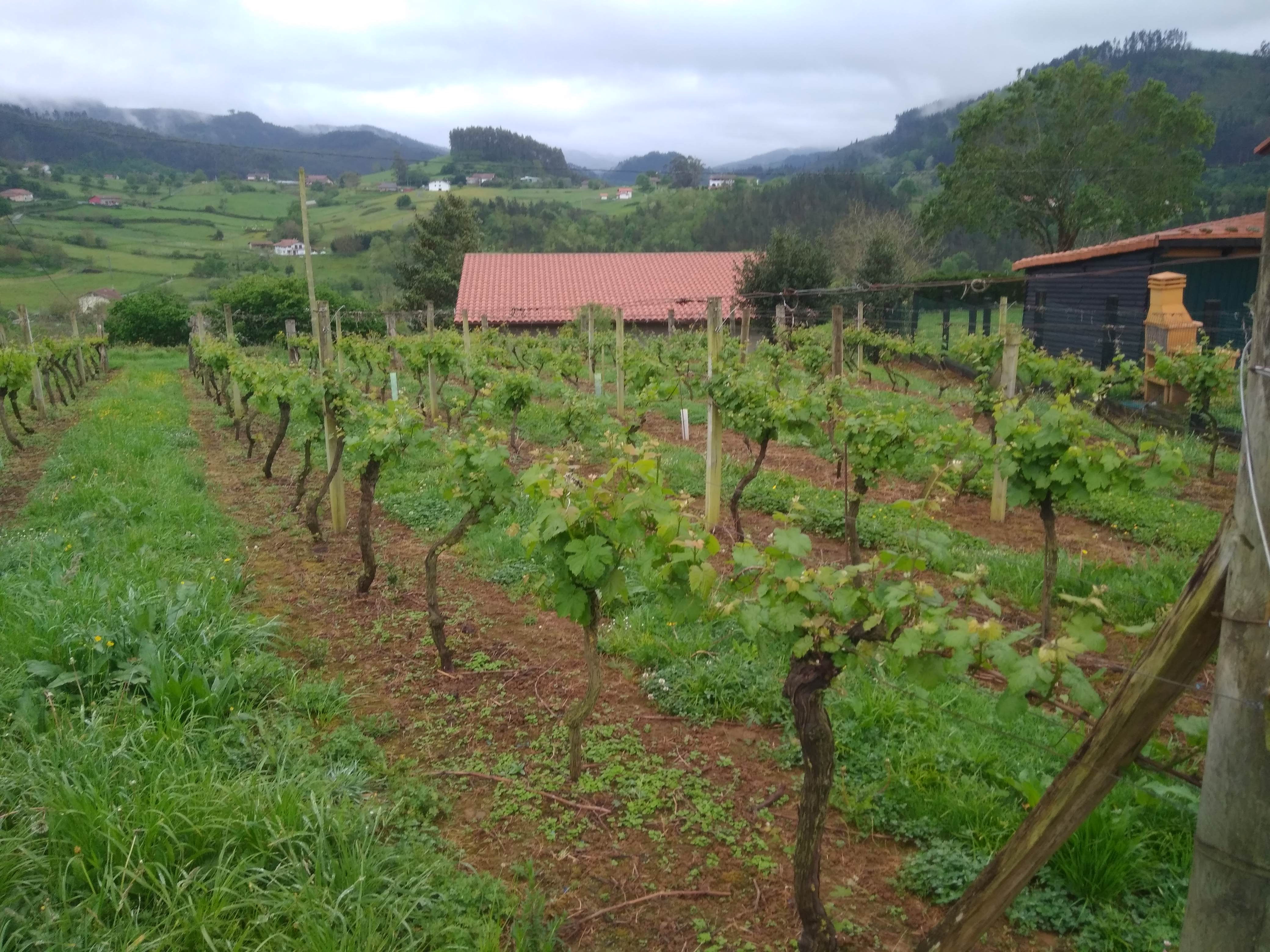 En las diferentes parcelas con orientación Sur que hacen un total de 2 Ha producimos la uva con la que elaboramos el Txakoli Urdaibai. El 95% de las plantas son Hondarrabi Zuri, y un 5% Une Mahatsa (folle blanche) .