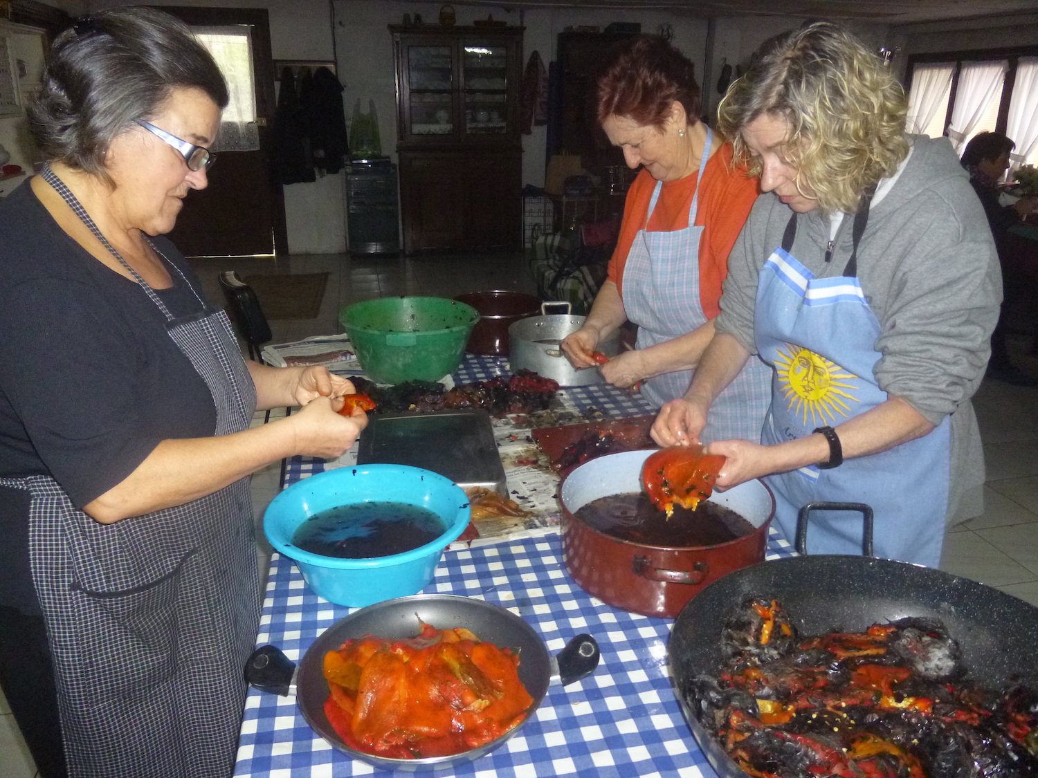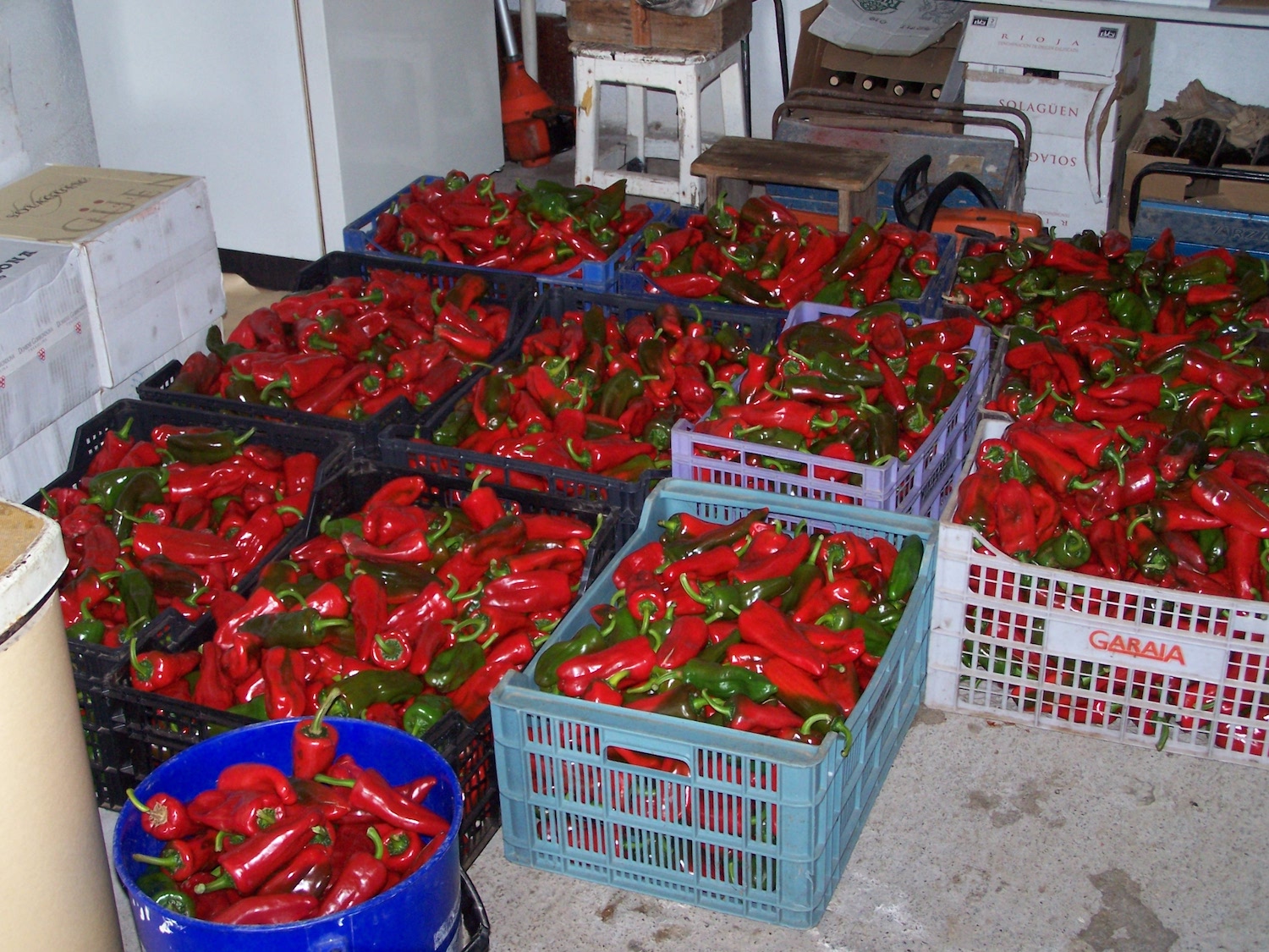Piperrei dagokienez, txorizeroak edo Gernikako piperrak, abuztu eta irailetik aurrera landarean bertan heltzen utzi, eta gorritzen hasita daudenean batzen dira. Ondoren, kordak egiten dira, banan-banan orratza eta listaria buztantxotik sartu eta elkarrekin josita. Kordak portaleko hagetan edo etxe-aurrean eskegitzen dituzte sikatzeko. Behin zimelduta, piperrok, neguan, txerria hil eta gero, txorizoak egiteko erabiltzen zituzten; baita urte osoan salsak prestatzeko ere.